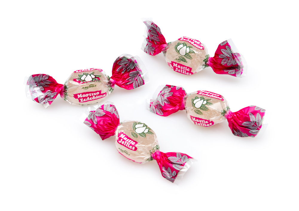 Ingredients: Sugar, Water, Glucose Syrup, Humectant: Sorbitol. Gelling Agent: Pectine, Acidifying Agent: Citric Acid and Sodium Citrate. Flavour Mastic oil